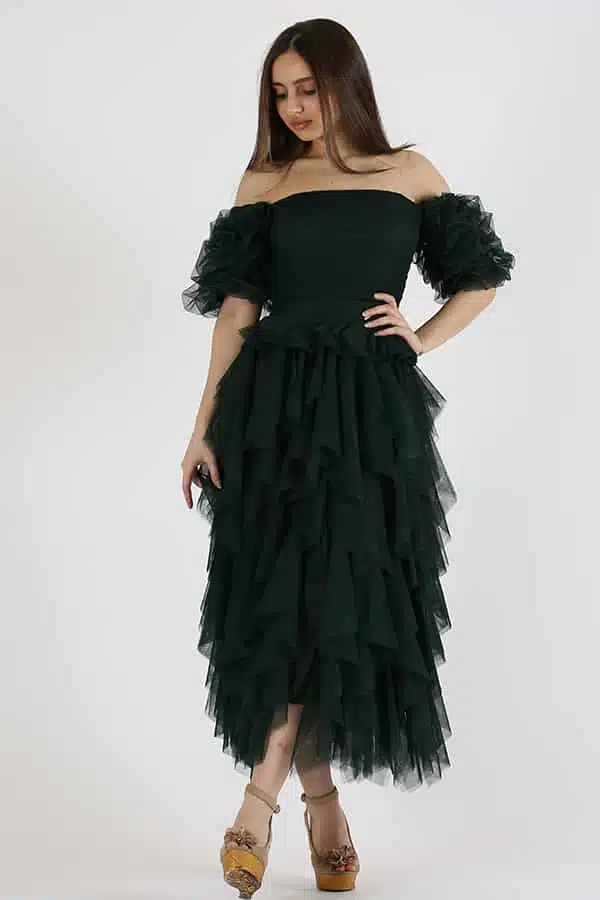 فستان ميدي قصير بدون أكمام صدر مكشوف