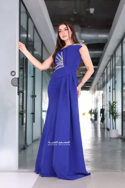 - فستان نيلي طويل: فساتين النيلي الطويلة تعطي إطلالة رشيقة وأنيقة، وتتناسب مع المناسبات الرسمية وحفلات السهرة.