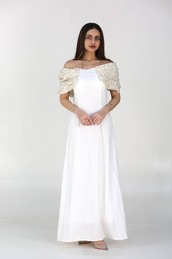 جلابية سعودية نسائي بأكمام اوف شولدر مطرزة