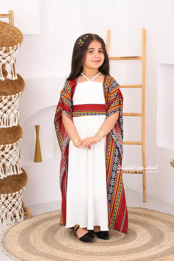 جلابية أطفال عسيري مصممة بعناية لتضفي لمسة تراثية ساحرة على إطلالة صغيرتك في المناسبات الرمضانية والغبقات. مصنوعة من خامة الشيفون الناعمة التي تمنحها راحة وأناقة، وتتميز بتفاصيل رائعة مثل الشال الأنيق والحزام التراثي المزين بنقوش مستوحاة من التراث العسيري الأصيل. هذه الجلابية تجمع بين الأصالة والحداثة لتكون الخيار المثالي لأناقة الأطفال في المناسبات الخاصة. مثالية للاحتفالات الرمضانية والظهور بإطلالة أنيقة ومميزة تعبّر عن الفخر بالتراث. احصلي على جلابية أطفال عسيري التي تبحثين عنها واجعلي طفلتك تتألق بأسلوب أنيق يعكس جمال التراث السعودي .