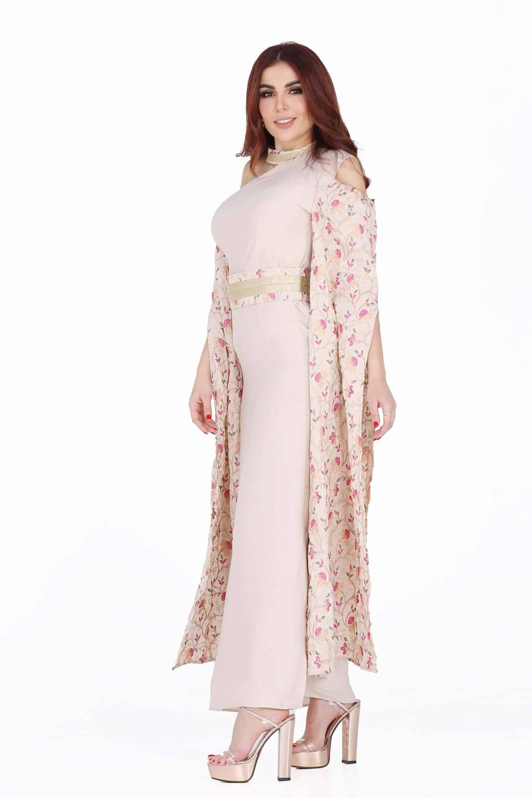 اللون: تكون الجلابية بلون بيج، وهو لون هادئ ومتناسق مع الأنماط التقليدية. يعزز اللون البيج الطابع الراقي والكلاسيكي للجلابية.