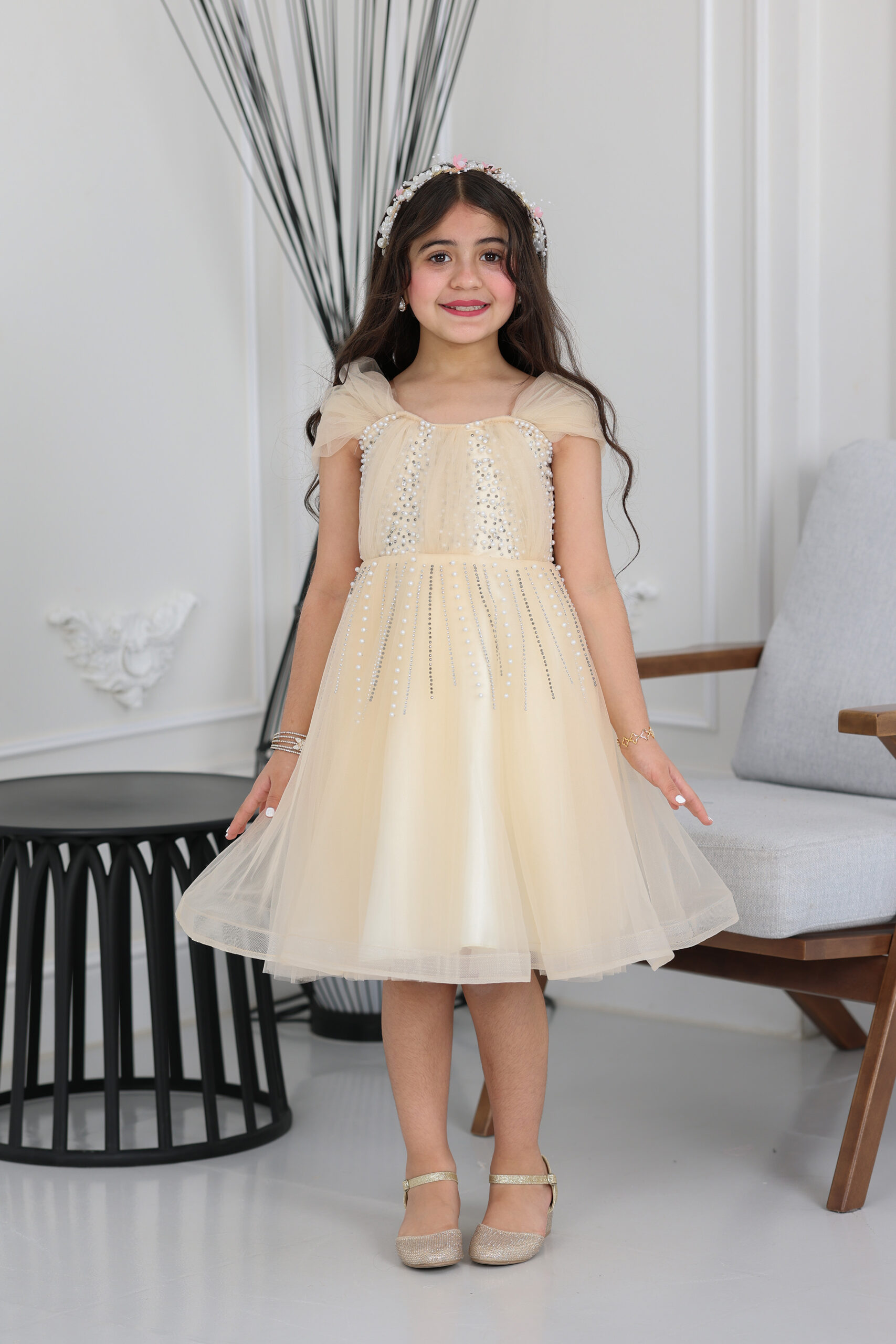 فستان بناتي تل لؤلؤ