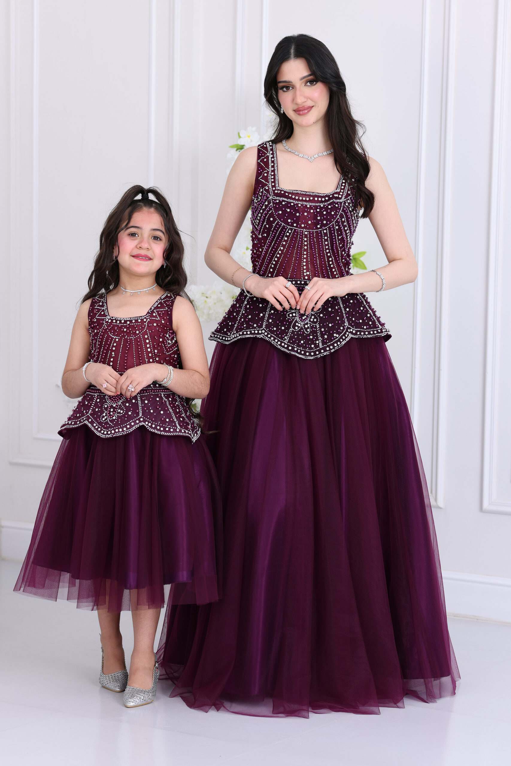 فستان بناتي راقي ملكي قطعة مثالية التي تمنح طفلتك إطلالة الأميرات الساحرة في المناسبات الكبرى وحفلات الزفاف. يندرج هذا التصميم تحت فئة أفخم فساتين سهرة للبنات في السعودية، حيث يجمع بين براءة الطفولة وفخامة التصميم الملكي. يتميز الجزء العلوي من الفستان بتطريز يدوي كثيف ومتقن من الخرز والكريستال اللامع الذي يغطي الصدر بالكامل، مما يجعله يخطف الأنظار في كل سهرة ومناسبة سعيدة.
