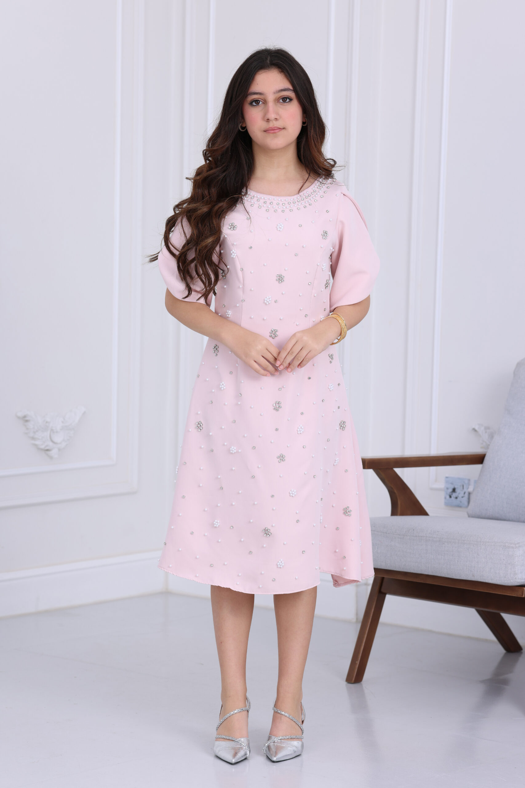 فستان البنوتة يجنن وخامته ناعمة ما تحسس الجسم.