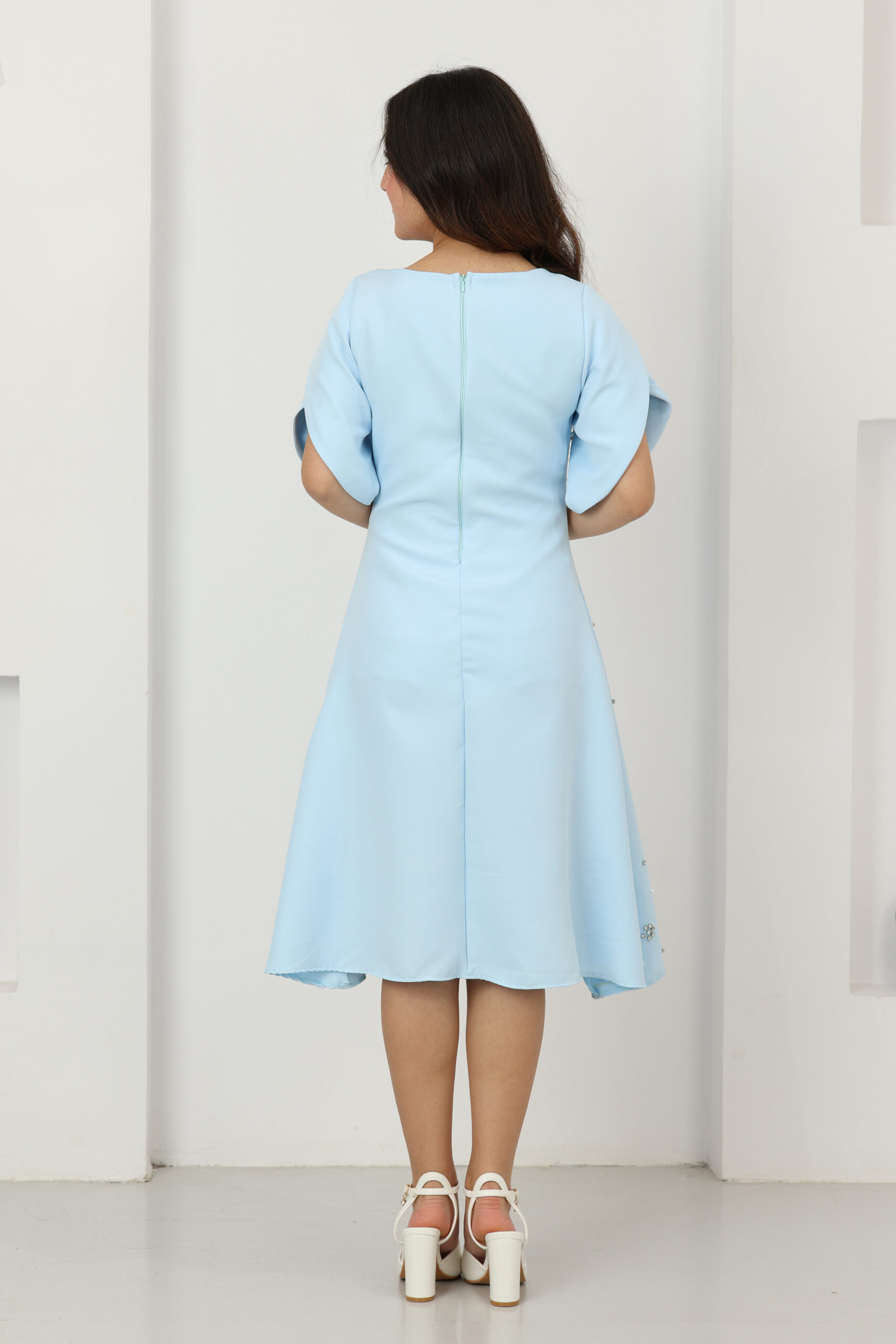 التخزين السليم: قومي بتخزين الفستان في مكان جاف ومنعزل عن الرطوبة للحفاظ على جمال الكريستالات والإكسسوارات.