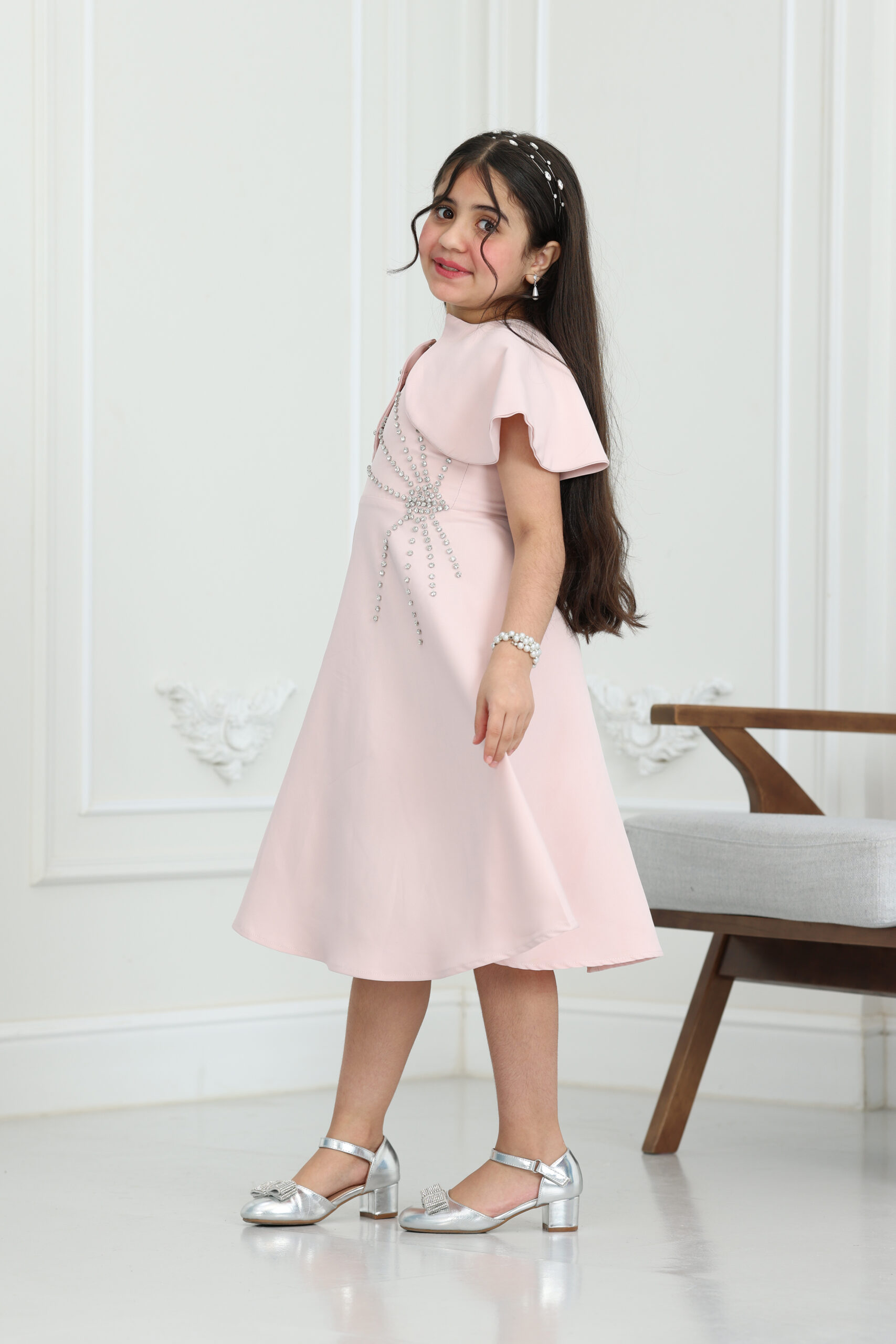 اعتمدنا في “المصمم الحديث” على خامة “كريب فاخر” تمتاز بنعومة الملمس وبرودة القماش، لضمان راحة البنت طوال اليوم. القماش ثقيل بما يكفي ليحافظ على شكل الفستان المنفوش، مع بطانة داخلية كاملة ناعمة تمنع الشفافية وتوفر حماية لبشرة الأطفال الحساسة. الجودة هنا تتحدث عن نفسها، من متانة الخياطة إلى ثبات حبات اللؤلؤ، لضمان استمرار القطعة بجمالها الأصلي حتى مع تكرار المناسبات، ليكون استثماراً رائعاً في خزانة طفلتك.
