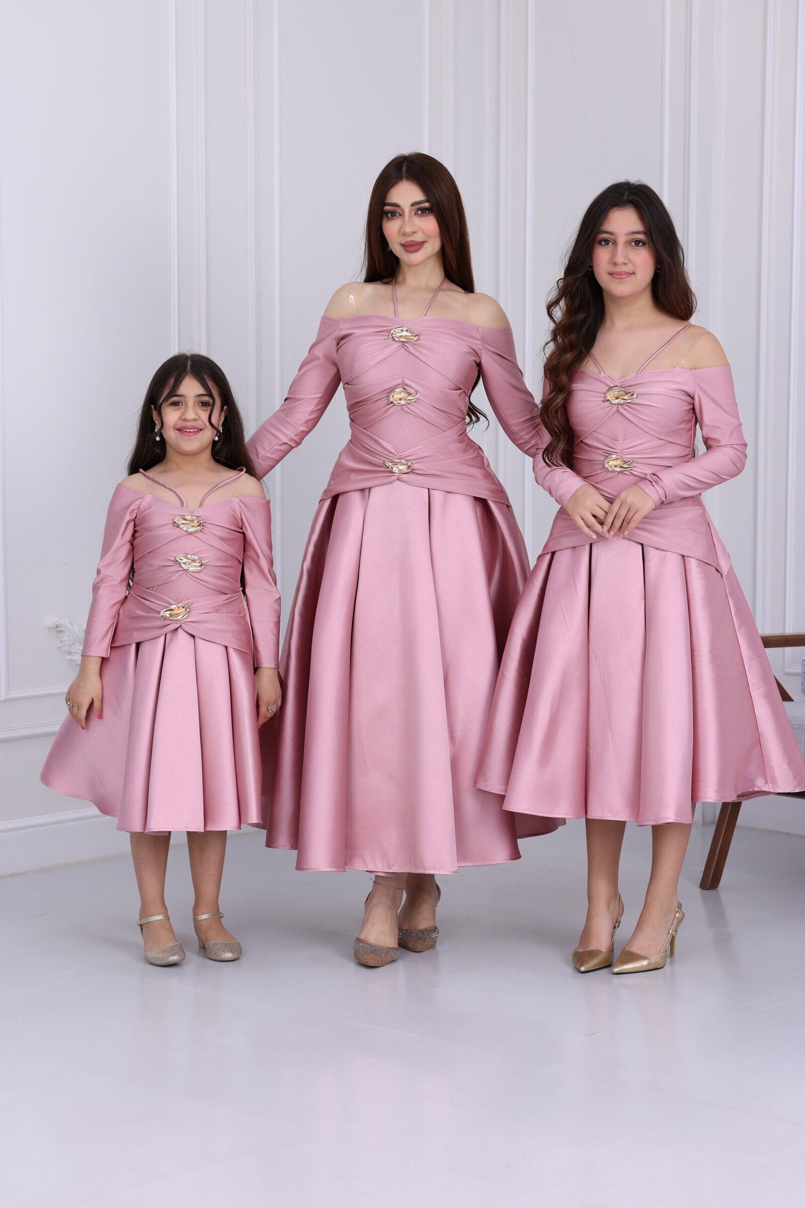 - المناسبة: مثالي لحفلات الزفاف، الأعياد، وموديلات “أم وبنت” المتطابقة.فساتين بناتي