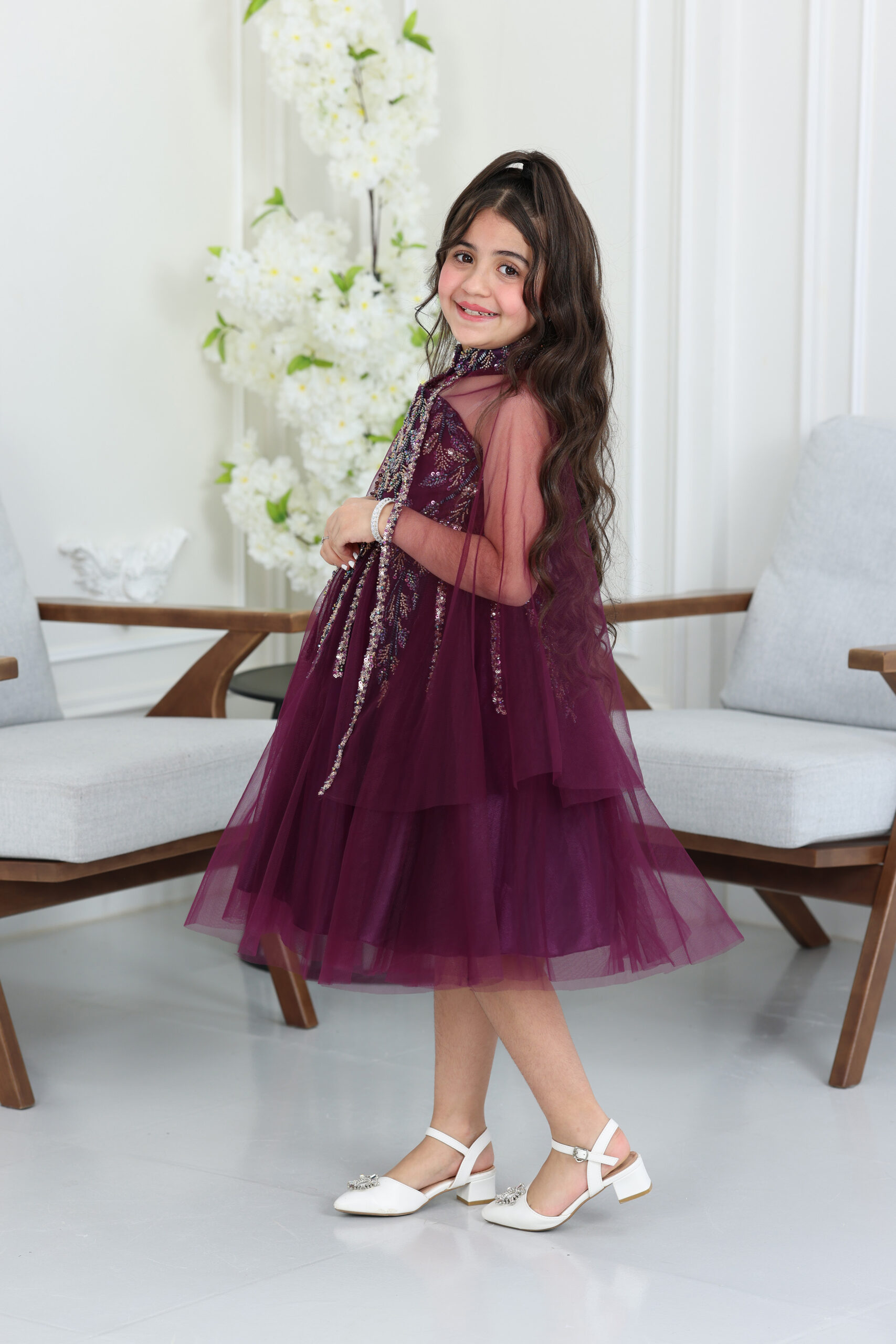 فستان بناتي كاب مطرز بتصميم يتميز بتطريز شك يدوي فاخر على الصدر، مما يجعله قطعة فريدة. القصة قصيرة وبطبقات من التل المنفوش، اللي يخليها تتحرك بكل سهولة وراحة. مرفق معه كاب صغير أنيق بتصميمه الراقي ويمنحها طلّة أميرة حقيقية. هذا الموديل الأنيق من المصمم الحديث يعتبر أفضل فساتين البنات للمناسبات وعليه طلب قوي في السعودية. اطلبيه الآن لضمان تميّز طفلتك
