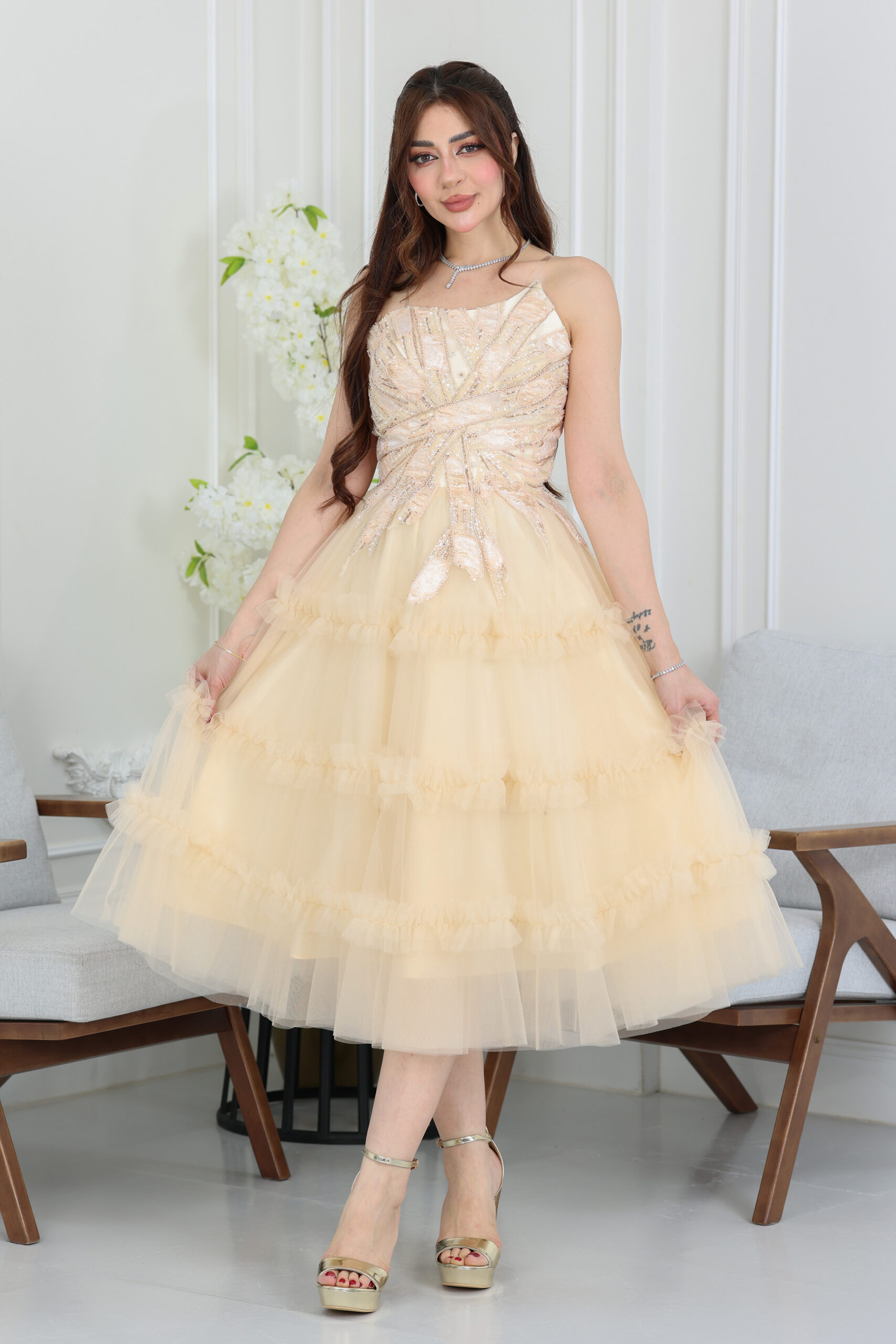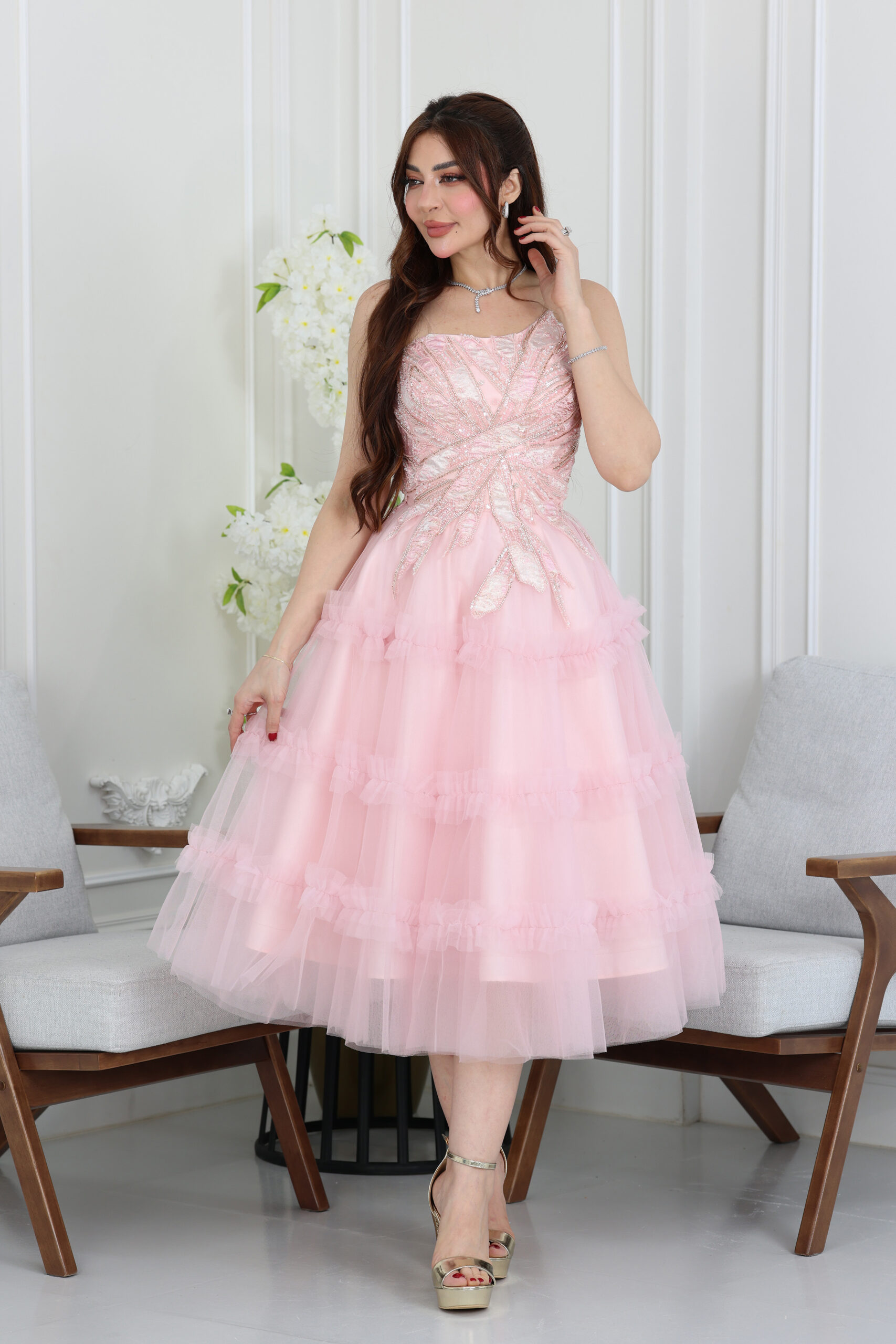 فستان تل مطرز ميد بإطلالة تخطف الأنظار وفي نفس الوقت مريحة هو القطعة المثالية! الفستان هذا ضمن مجموعة فساتين الميد الفخمة اللي يوفرها لك المصمم الحديث، ومصمم بخصر محدد وتنورة من طبقات التل الراقصة وحركة أنيقة الجزء العلوي مزين بتطريز فاخر وخيوط لامعة بشكل فني،  يخلي الفستان مثالي لـ فساتين مناسبات رسمية لكن تحتاج لمسة مرحة وعصرية. سواء كان لمناسبة تخرج أو حفلة بسيطة أو حتى سهرة غير تقليدية، هذا الموديل يضمن لك التميز. لا تترددي في إضافة هذا الفستان الرائع لـ فساتين سهرة في دولابك، واطلبي الحين من متجرنا!
