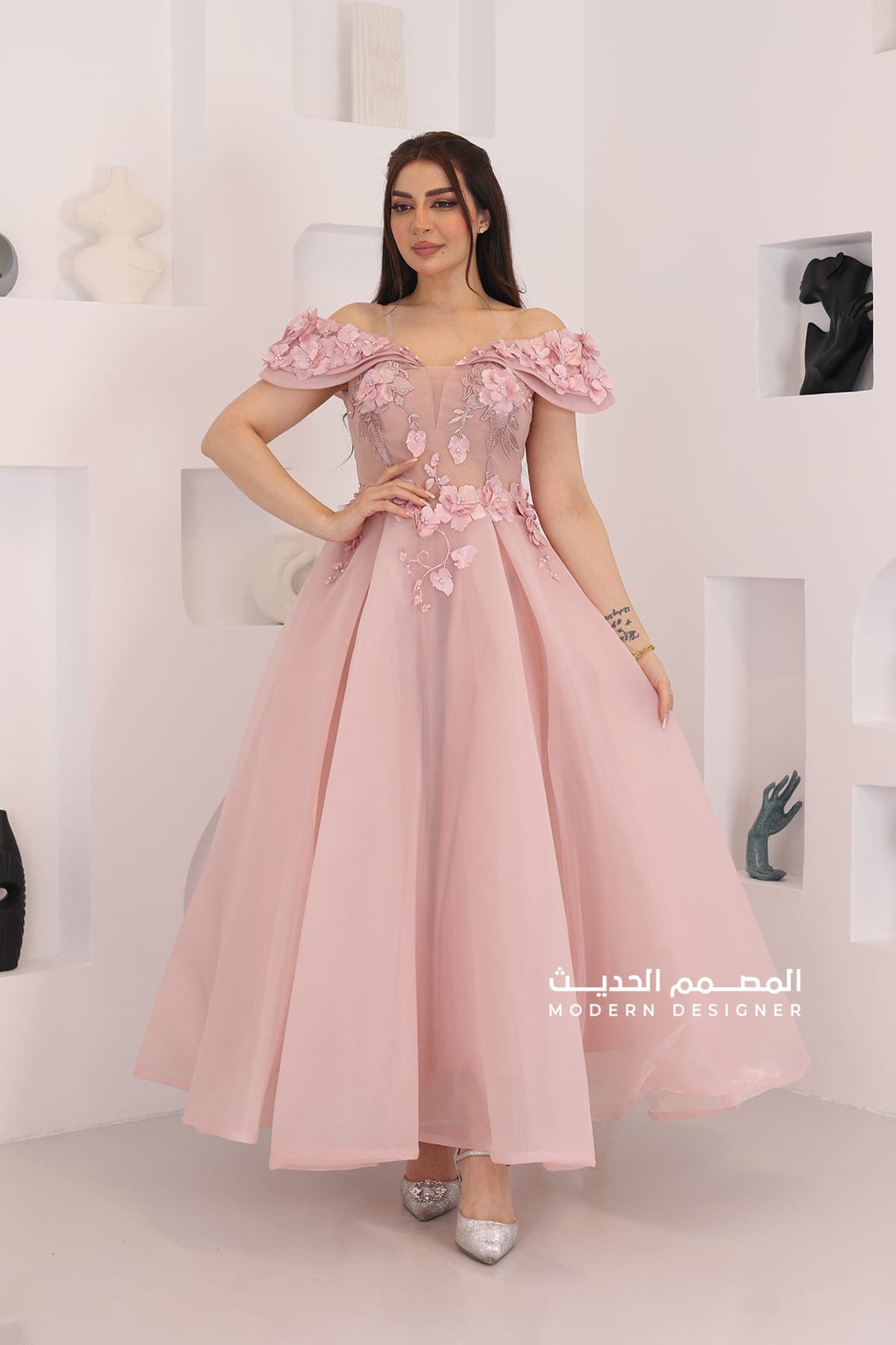 فستان سهرة اوف شولدر بورد فخمة يتميز الفستان بورد على الفستان بكسرات انيقة من الخصر الى الأسفل يأتي الفستان بتصميم حصري وانيق لأول مرره لدى برند المصمم الحديث يعكس الفستان جودة عالية وينسجم مع أحدث صيحات الموضة، مما يجعله قطعة استثنائية لإطلالتك في المناسبات الخاصة