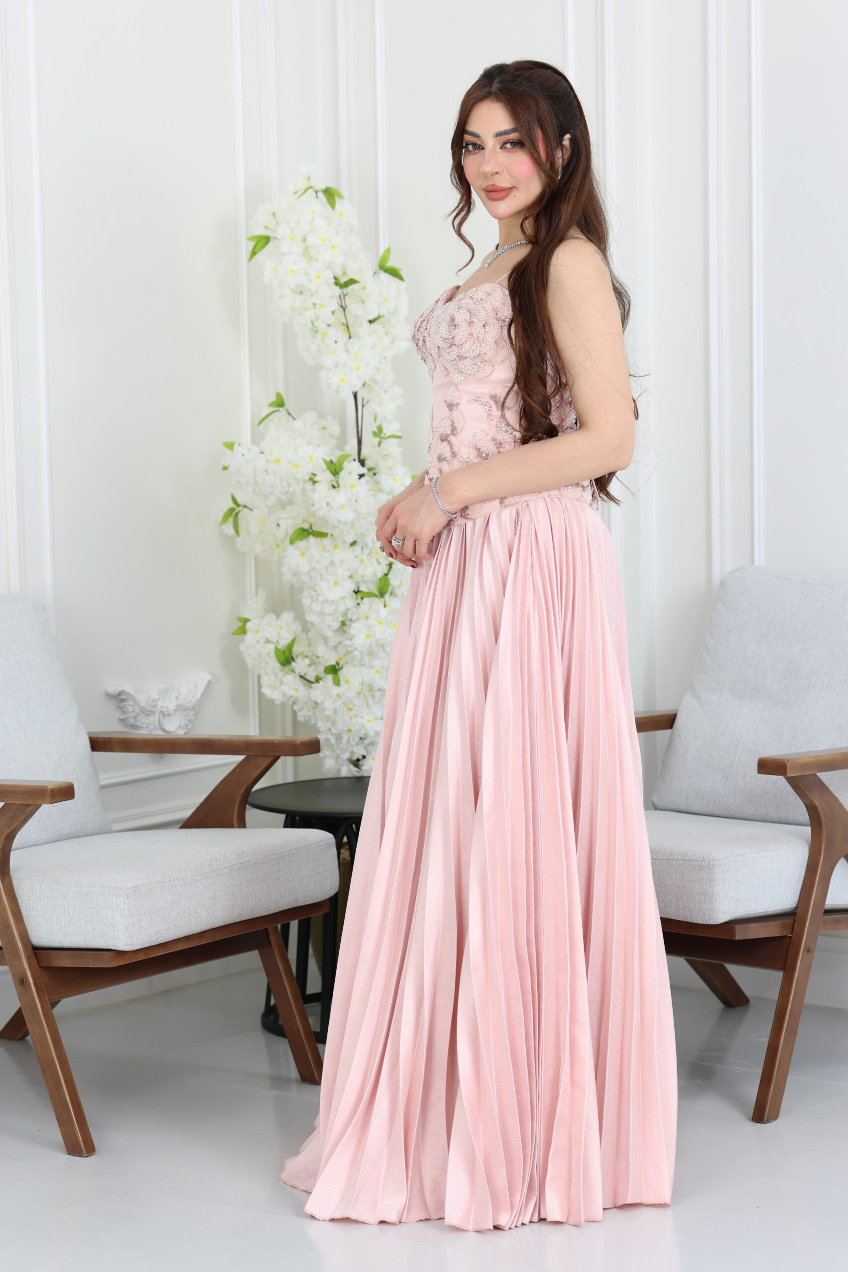 فستان سهرة بليسية مطرز هو الخيار اللي يخليك ملكة الحفل الفستان قطعة فنية من تصميم المصمم الحديث، ومثالي لأفخم فساتين مناسبات الخطوبة أو الزفاف يتميز الفستان بتنورة كاملة  تمنحك فخامة وحركة آسرة، أما الصدرية فمصممة بعناية ومزينة بتطريز لامع ومتقن، وهذا يبرز جمال الجزء العلوي. القصة بدون أكمام تسمح لك بإضافة المجوهرات الفاخرة لتكتمل أناقتك لا تفوتي فرصة اقتناء هذا الفستان الفخم اللي يجمع بين الموضة العالمية والذوق الرفيع. اطلبيه الآن من متجرنا وتألقي..