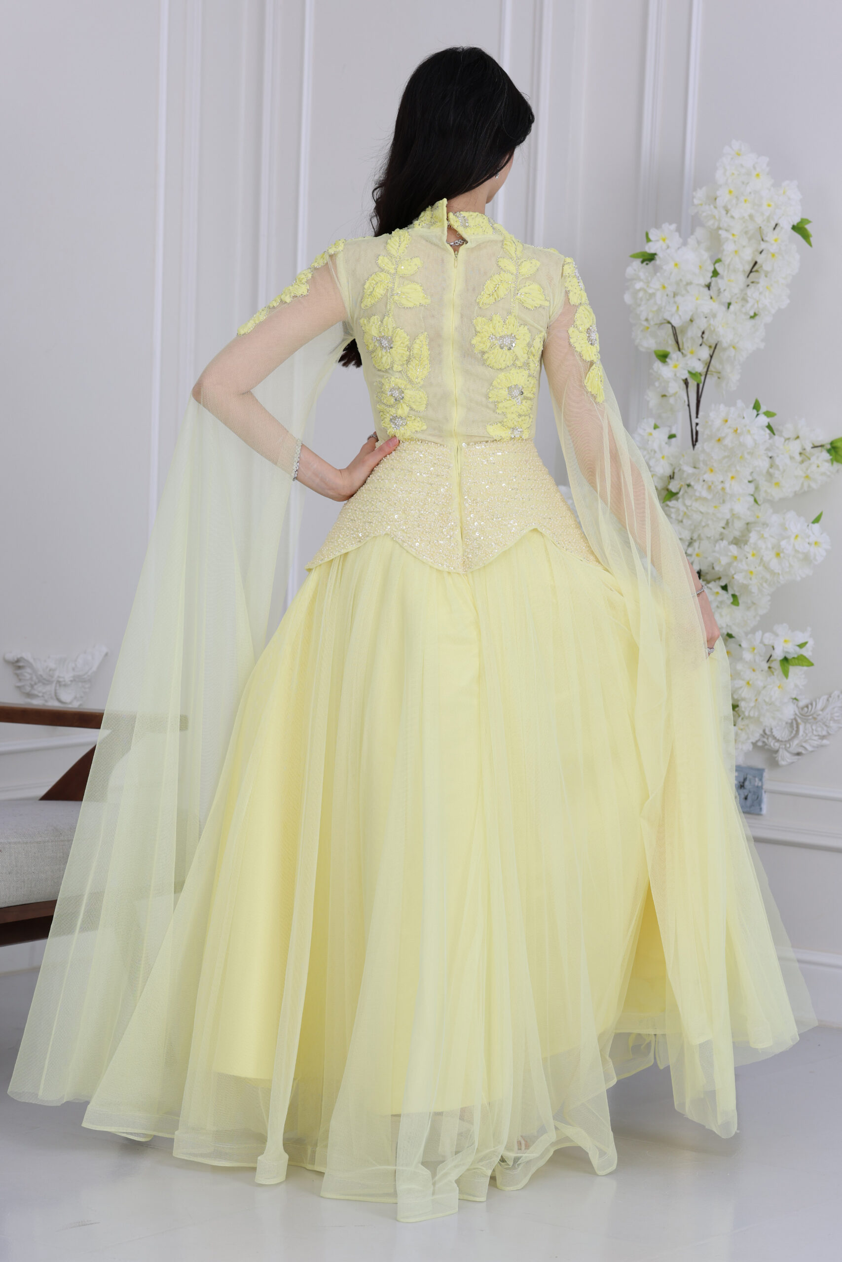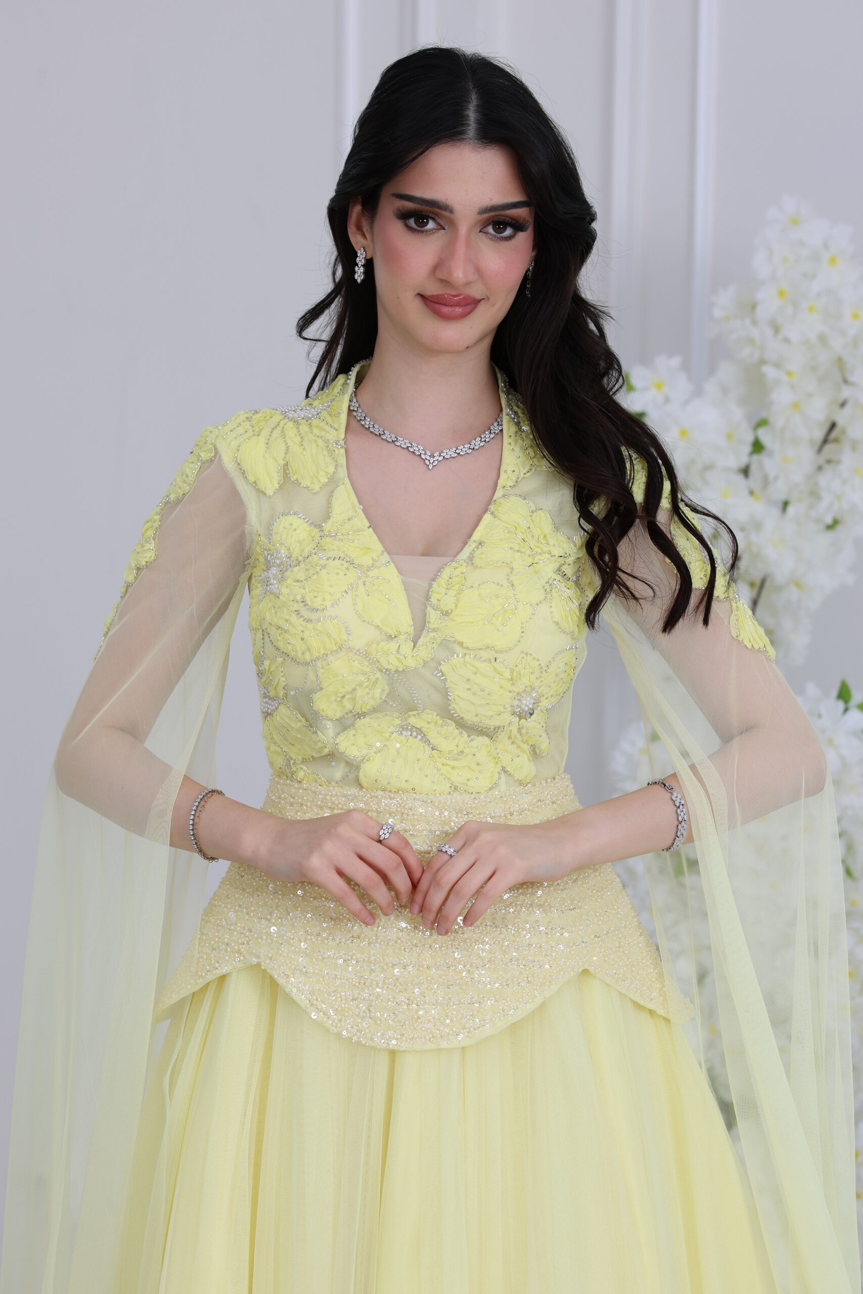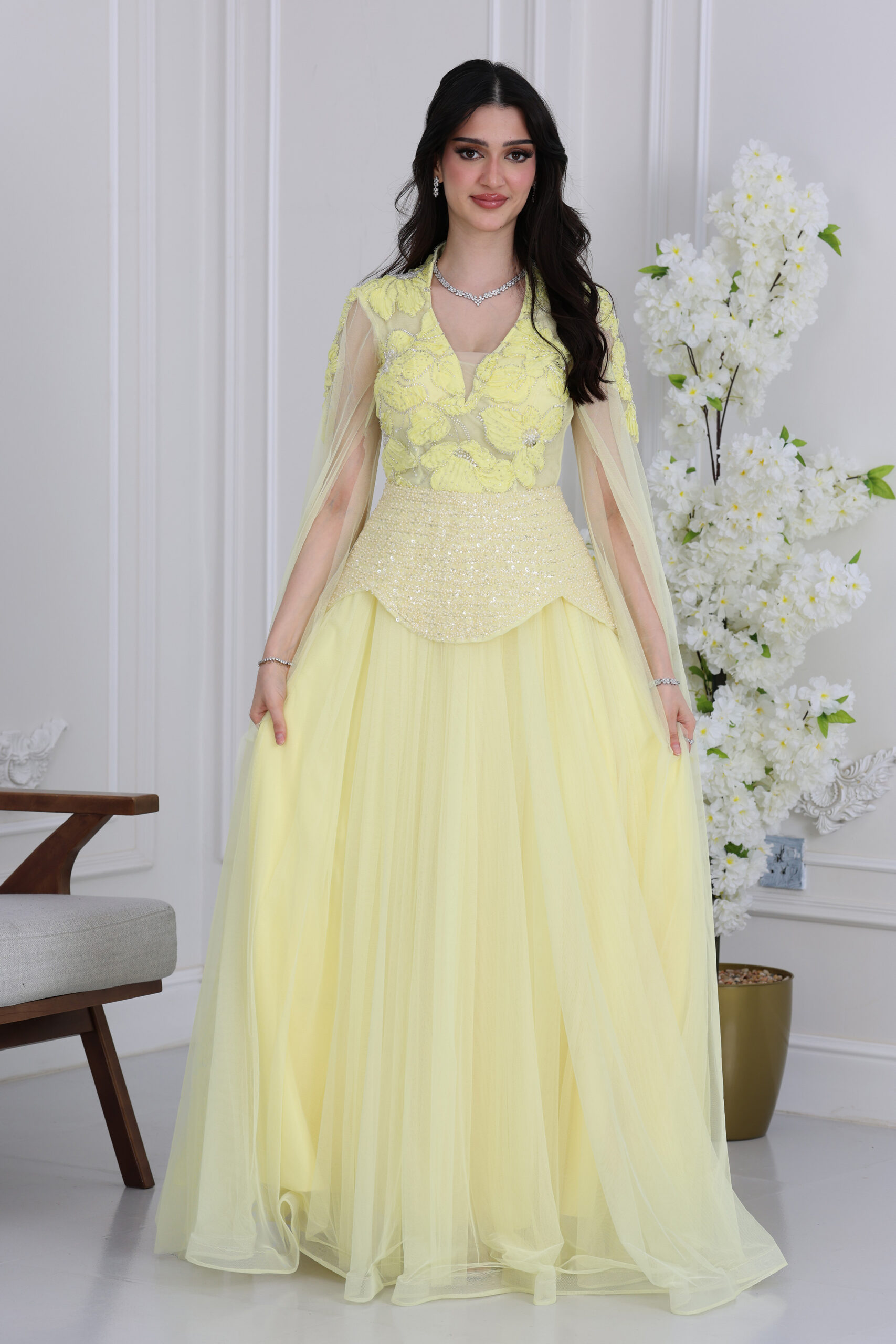فستان سهرة تل فخم بقصة تبرز جمال الخصر مع أكمام كيب طويلة من التل الشفاف، مما يضفي لمسة من الرقي التي تبحث عنها المرأة السعودية في موديلات فساتين سهرة 2025. إذا كنتِ ترغبين في إطلالة متكاملة، فإن هذا الـ فستان سهرة تل فخم يوفر لكِ الرقي بفضل تنورته الواسعة التي تمنحك الثقة في كل خطوة، مما يجعله ضمن قائمة أجمل فساتين سهرة وأكثرها طلباً. تم اختيار خامات التل بعناية لضمان الراحة والفخامة، ليكون هذا الـ فستان سهرة تل فخم هو استثمارك الرابح لتكوني الأجمل في حفلات الزفاف والمناسبات الرسمية، محققاً أعلى معايير الجودة في عالم الفساتين الراقية وتصاميم فساتين سهرة طويلة فخمة.