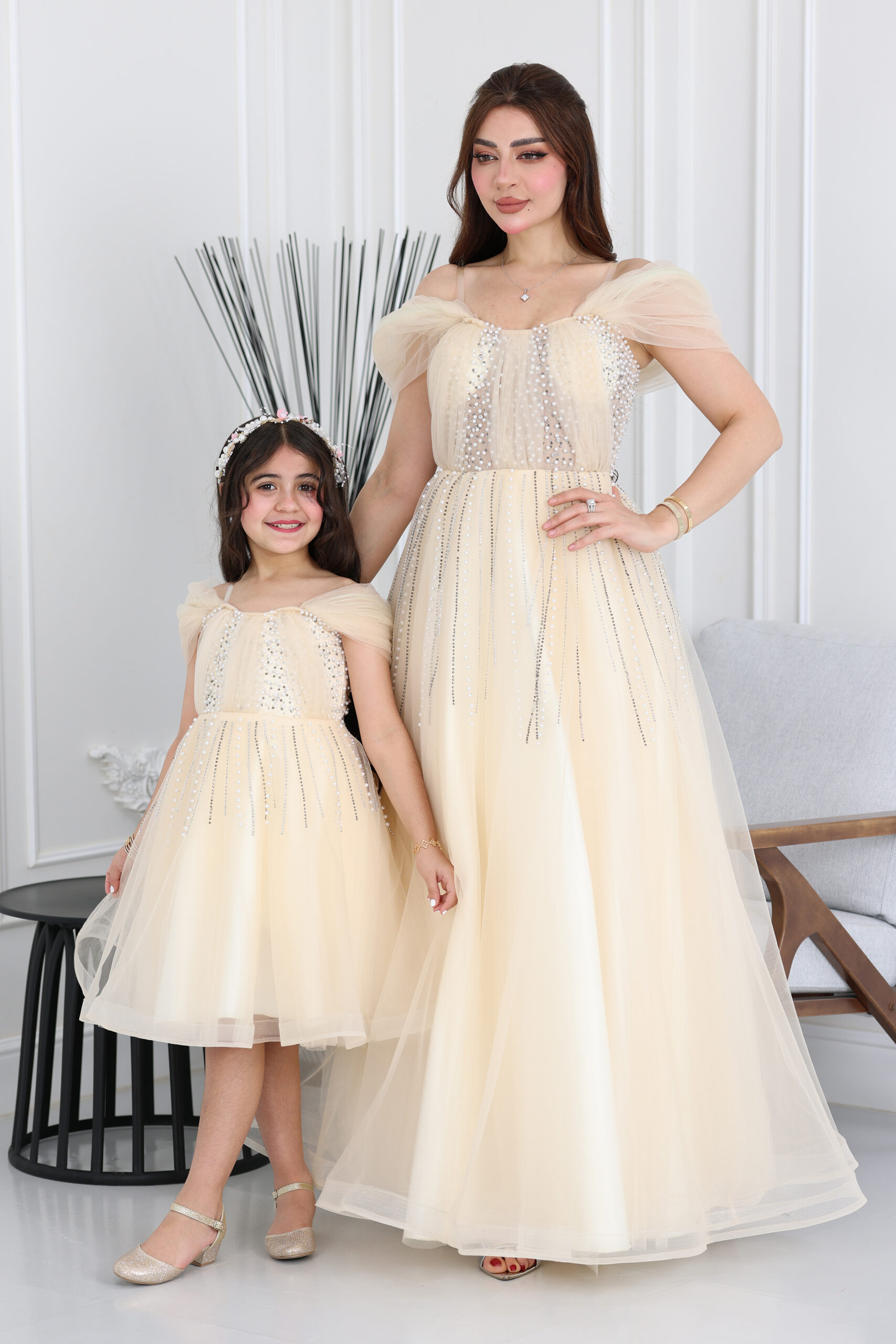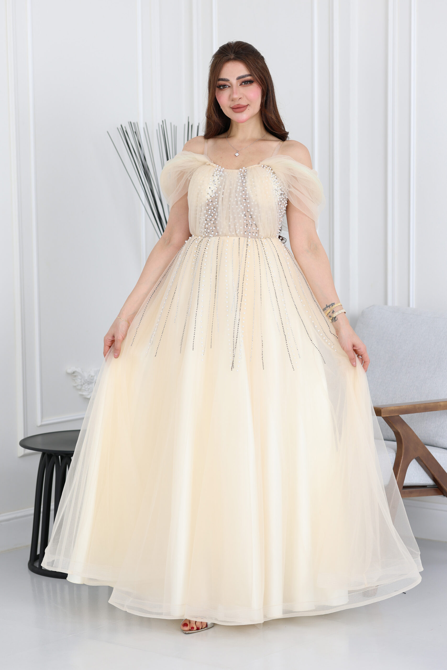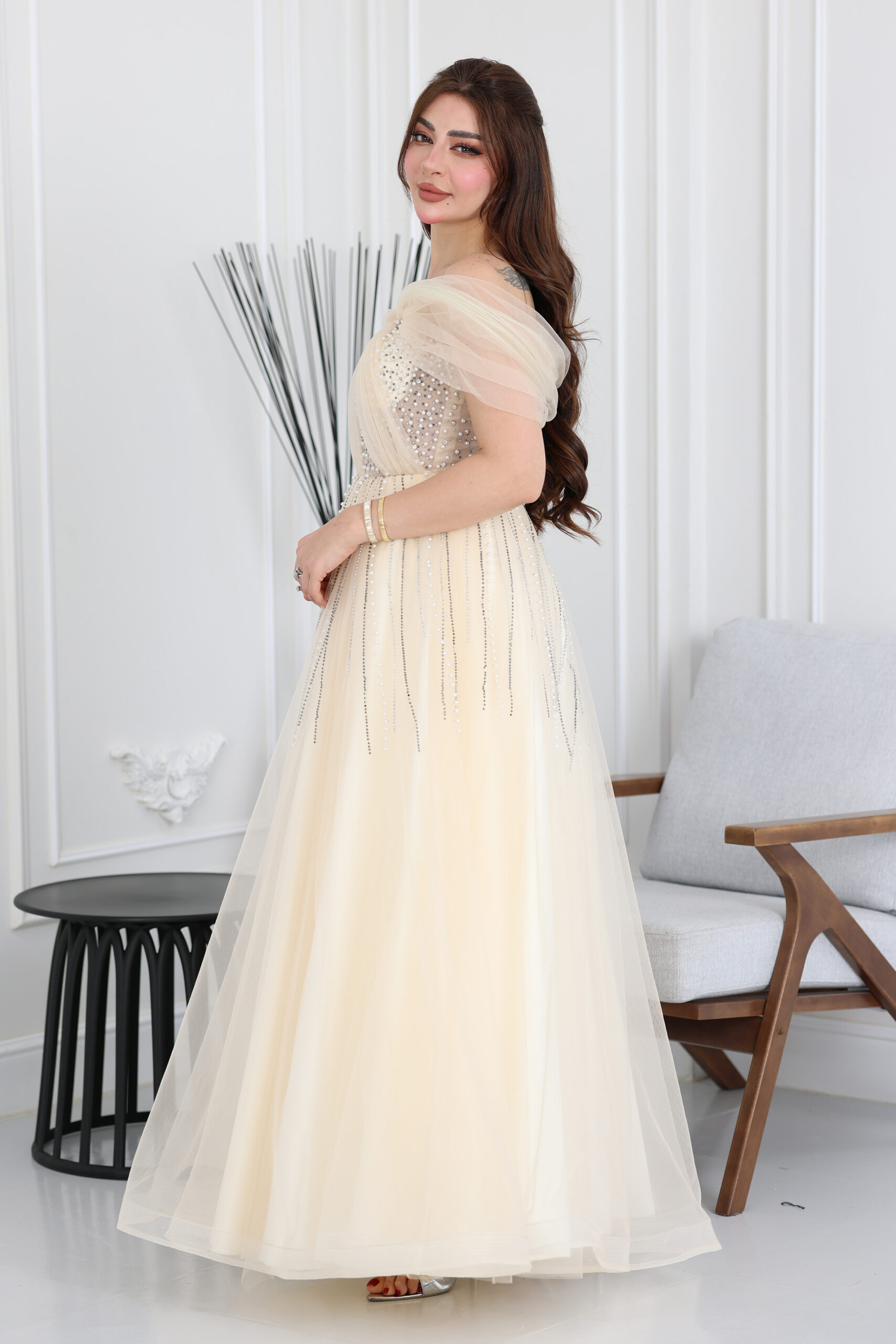 فستان سهرة تول لولو من “المصمم الحديث”، الذي يجسد قمة الفخامة والرومانسية في آن واحد. يُعد هذا التصميم خياراً مثالياً لمن تبحث عن فساتين سهرة ناعمة بلمسة ملوكية، حيث صُنع من طبقات التل الانسيابي الذي يمنحك حركة خفيفة وطلة حالمة، مع أكمام منسدلة (أوف شولدر) تزيدك أنوثة وجاذبية ما يميز الفستان هو دقة الشك والتطريز اليدوي بحبات اللولو والكريستال البراق التي تغطي منطقة الصدر وتنسدل على شكل خطوط طولية لأسفل، مما يمنح الجسم قواماً ممشوقاً وإيحاءً بالطول. إنه الخيار الأول للباحثات عن فساتين خطوبة أو فساتين ملكة، وحتى لحضور الزواجات الفخمة. كوني استثنائية واخطفي الأنظار بهذا الموديل الذي يجمع بين رقي التصميم وجودة التفاصيل.
