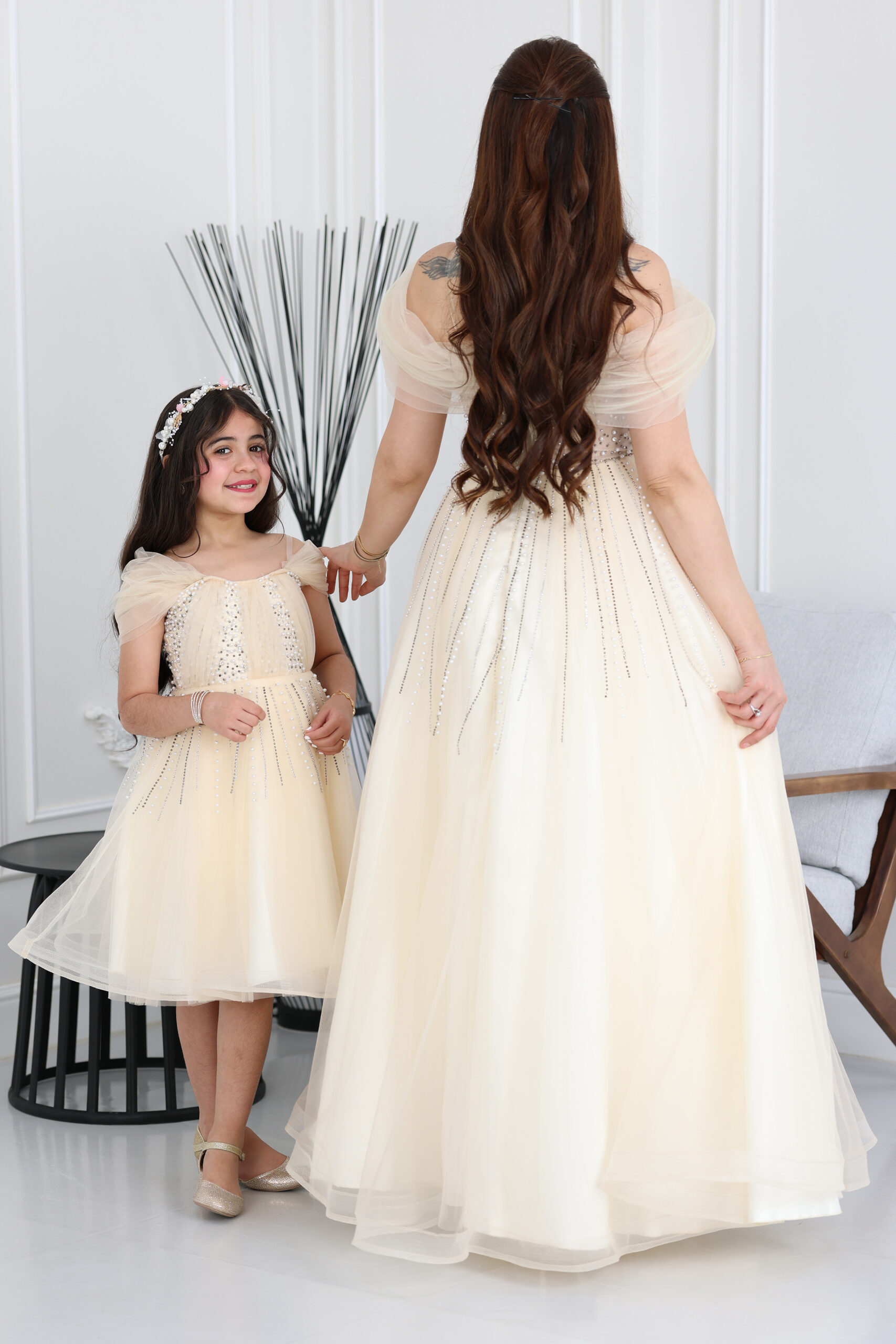 التخزين السليم: قومي بتخزين الفستان في مكان جاف ومنعزل عن الرطوبة للحفاظ على جمال الكريستالات والإكسسوارات.
