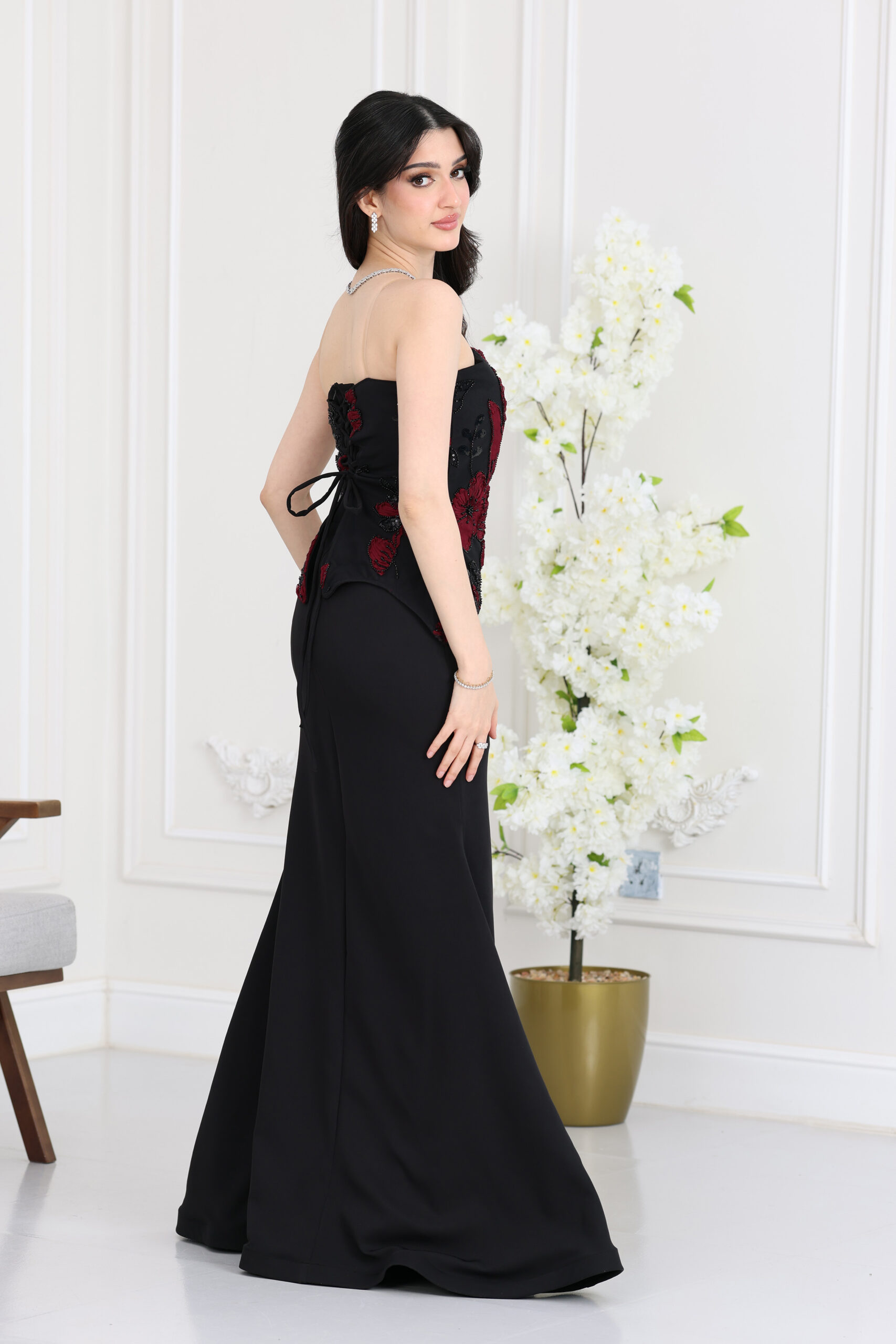فستان سهرة فخم مطرز يتميز هذا الموديل بتصميم “توب” مكشوف الأكتاف يبرز أنوثتك بأسلوب راقٍ، مع قصة كورسيه تحدد الخصر وتمنحك قواماً متناسقاً. الفستان مشغول بدقة بلمسات تطريز يدوية بارزة على شكل زهور موزعة بأناقة على الجزء العلوي، مما يضفي لمسة من الفخامة والعمق على التصميم من براند المصمم الحديث تنساب التنورة الطويلة بقصة “ميرميد” الشهيرة التي تعطي طولاً ورشاقة، لتجعل حضورك ملفتاً في حفلات الزفاف والمناسبات الكبرى. حرصنا في هذا التصميم على دمج الخامات الراقية مع التفاصيل العصرية لضمان راحة تامة وثقة لا تضاهى. إذا كنتِ تبحثين عن فساتين مناسبات تجمع بين الحداثة والكلاسيكية، فإن هذا الفستان هو القطعة التي ستجعلك نجمة السهرة وتمنحك إطلالة ملكية تخطف الأنظار من أول لحظة
