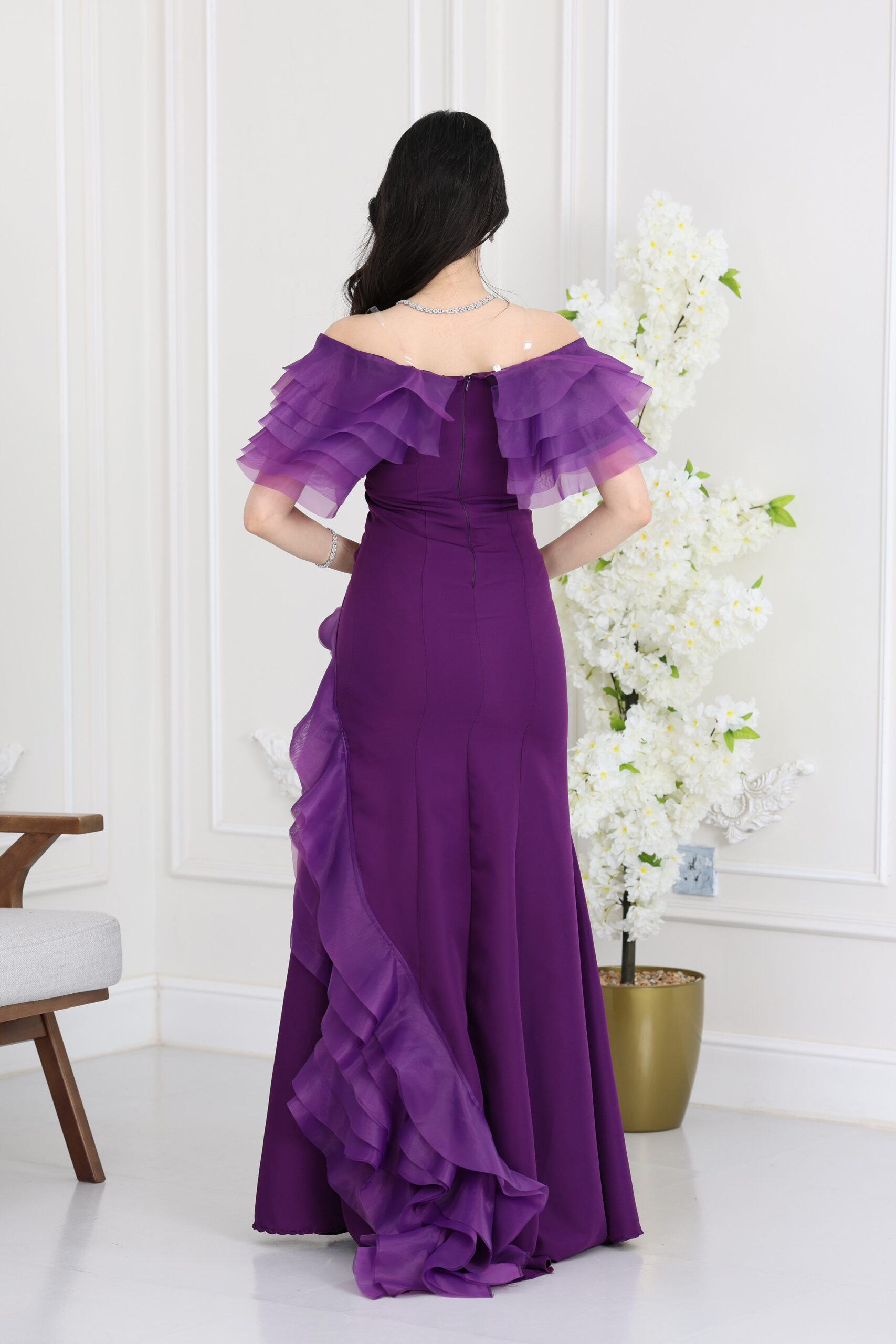 فستان سهرة فخم ناعم يتميز هذا الموديل بتصميم “أوف شولدر” يبرز جمال الأكتاف بلمسة عصرية، مع تفاصيل الكشكش (الكسرات) المتدرجة التي تلتف حول الصدر وتنساب بنعومة على جانب الفستان، مما يعطيه حركة حيوية وفخامة استثنائية. القصة مصممة لتحدد الخصر بشكل أنيق وتبرز القوام بأسلوب أنثوي طاغي، مما يجعله من أكثر فساتين المناسبات طلباً لهذا الموسم في السعودية سواء كنتِ تبحثين عن فستان لخطوبة أو حضور حفل زفاف فخم، فإن هذا الفستان يجمع بين بساطة التصميم وقوة التفاصيل. الخامات المختارة بعناية توفر لكِ الراحة طوال الأمسية مع الحفاظ على المظهر الملكي. هذا التصميم يضمن لكِ تصدر المشهد بإطلالة لافتة تخطف الأنظار وتلائم ذوق المرأة السعودية الرفيع التي تعشق التجدد والأناقة في فساتين السهرة