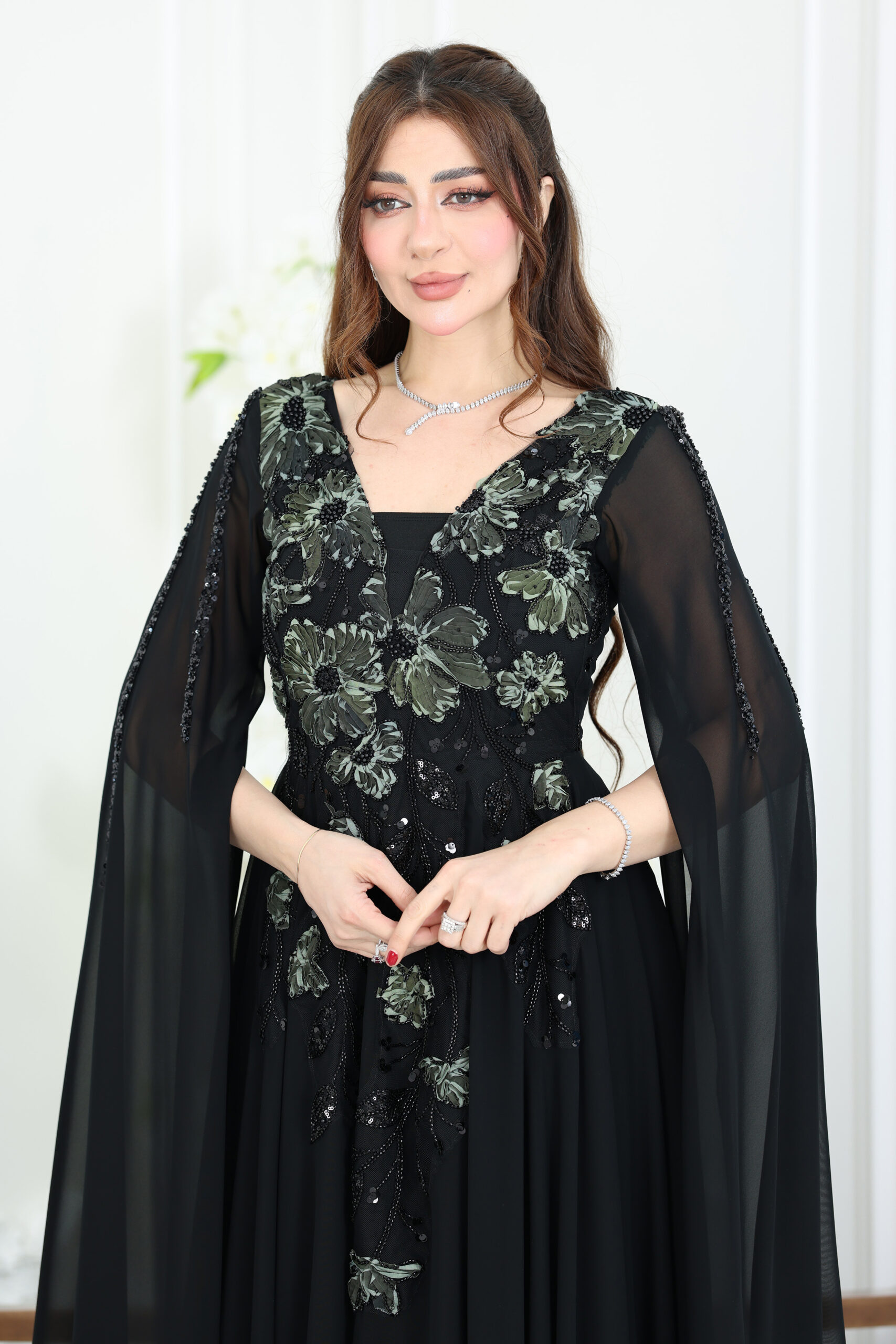 فستان سهرة مطرز راقي يجمع بين  الاناقة والفخامة يتميز بأكمام  من الشيفون، اللي يمنحك تغطية أنيقة وحركة ملكية ساحرة. الصدر والخصر مطرزان بتطريزات براقة وهذا الشغل الدقيق يخلي الفستان قطعة فنية وبقصة صدر أنيقة  وناعم على الجسم، مع تصميم مخصر يبرز جمال القوام برشاقة. القماش شيفون راقي ينسدل بخفة، وهذا يجعله من أفضل فساتين السهرة لسهولة الحركة والراحة. هذا الموديل الراقي من المصمم الحديث هو فرصتك للتألق بإطلالة تجمع بين الفخامة والاحترافية. اطلبيه الآن وتأكدي إنك بتكونين مميزة.