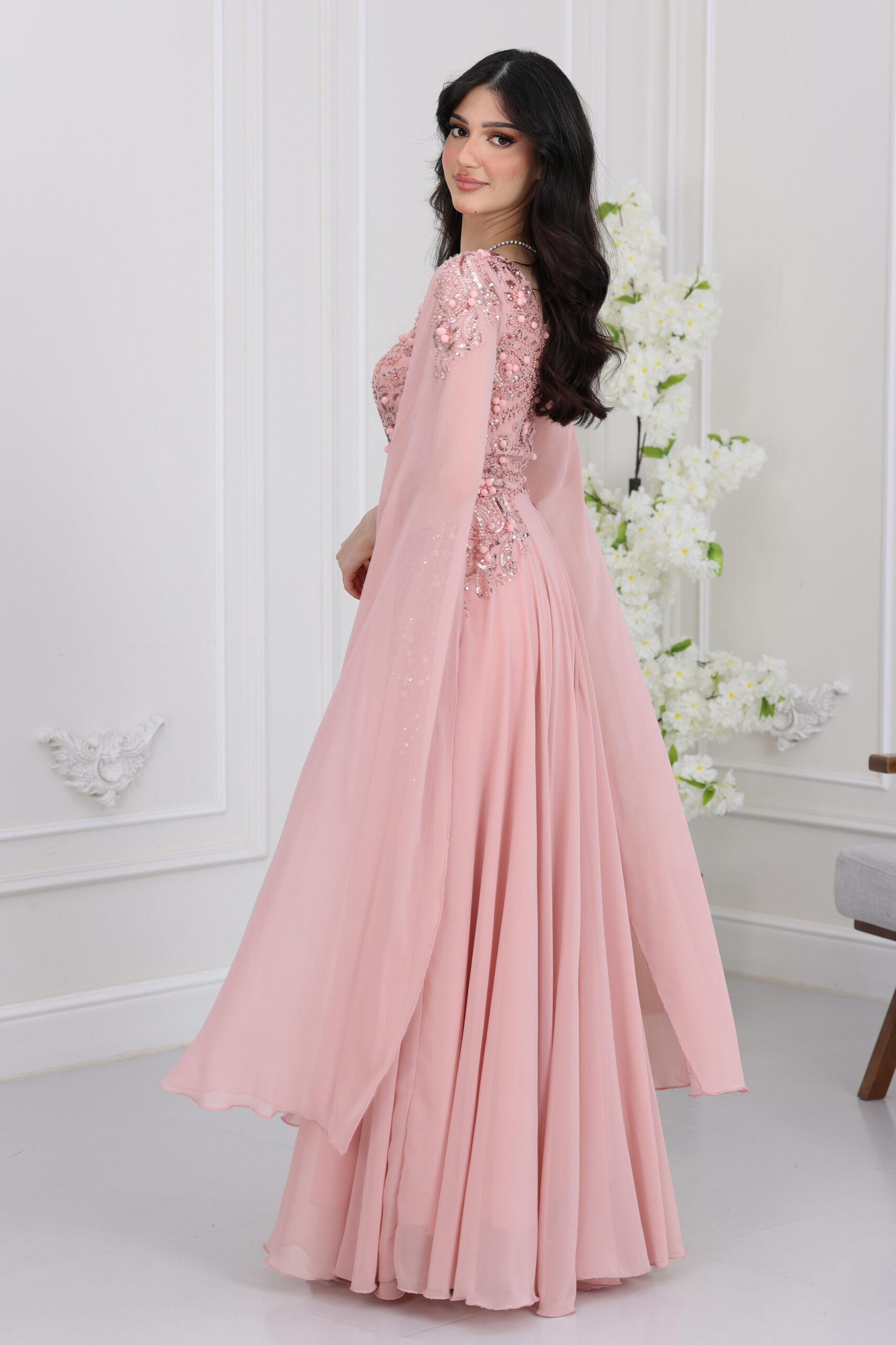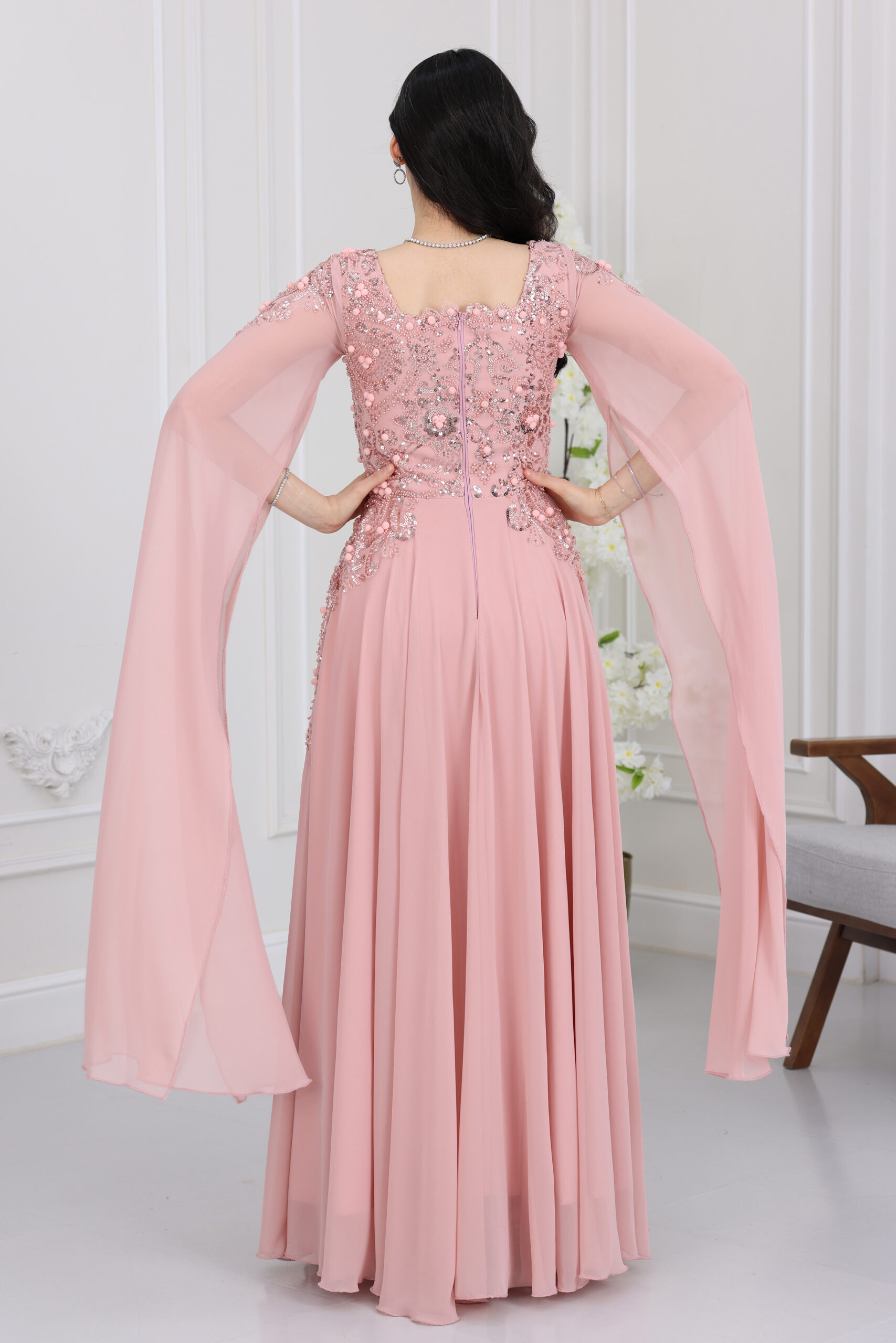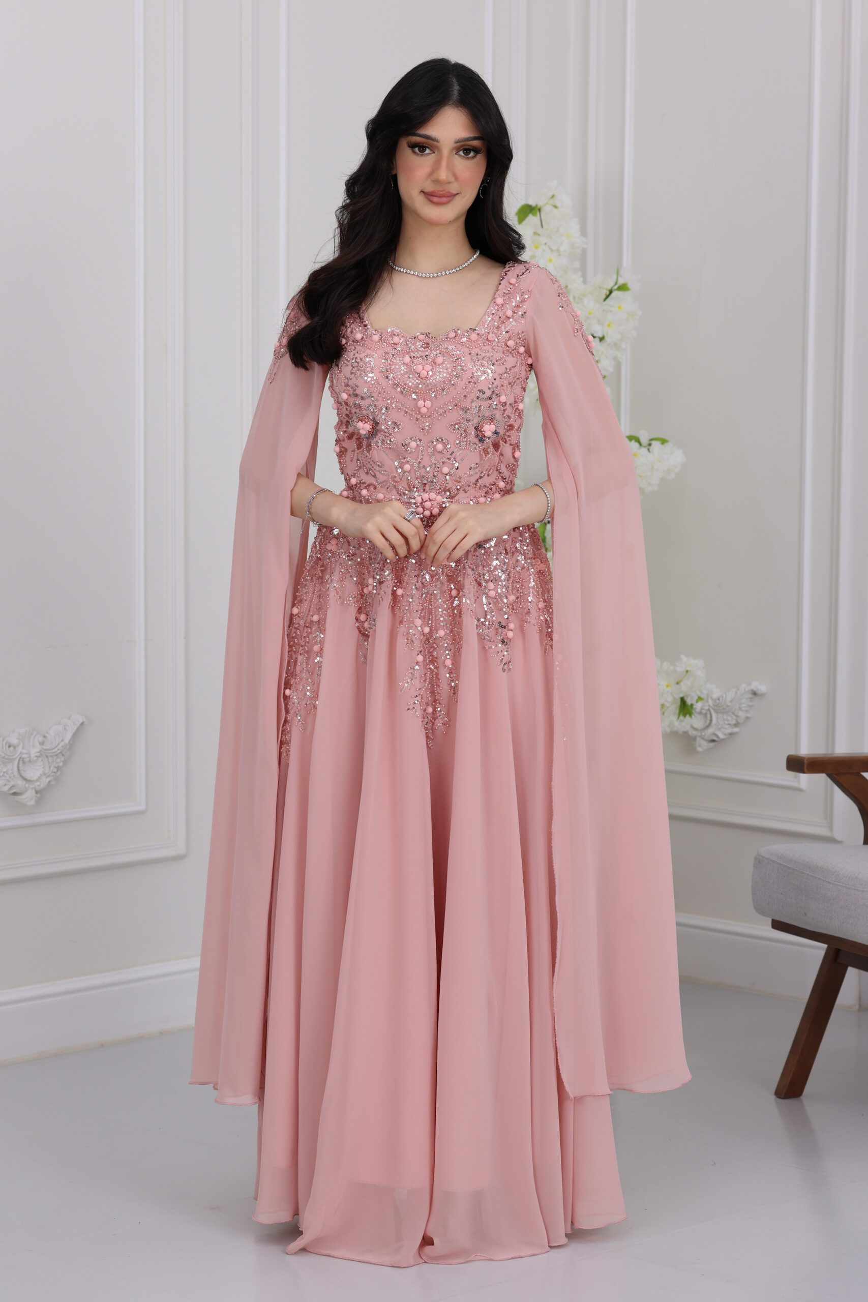 فستان شيفون اكمام منديل سهرة