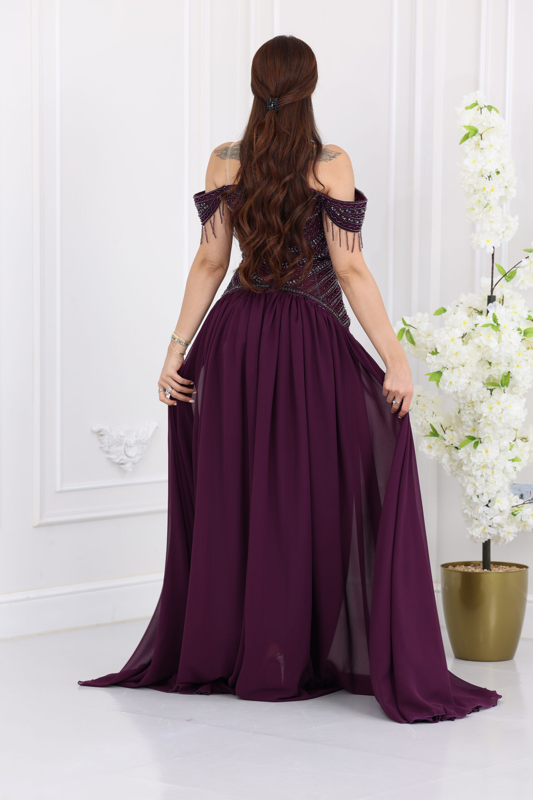 - تصميم أوف شولدر بأهداب كريستالية متدلية تزيد من فخامتكِ.