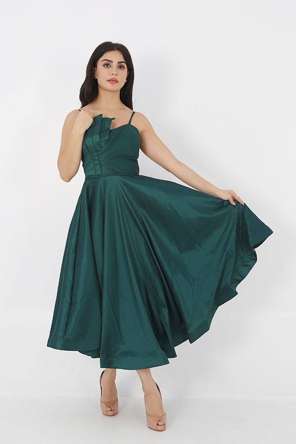 الخامة : يصنع الفستان من خامة فاخرة، مما يجعله مريحًا في الارتداء يضيف لمسة من الأناقة والرقي إلى الإطلالة.