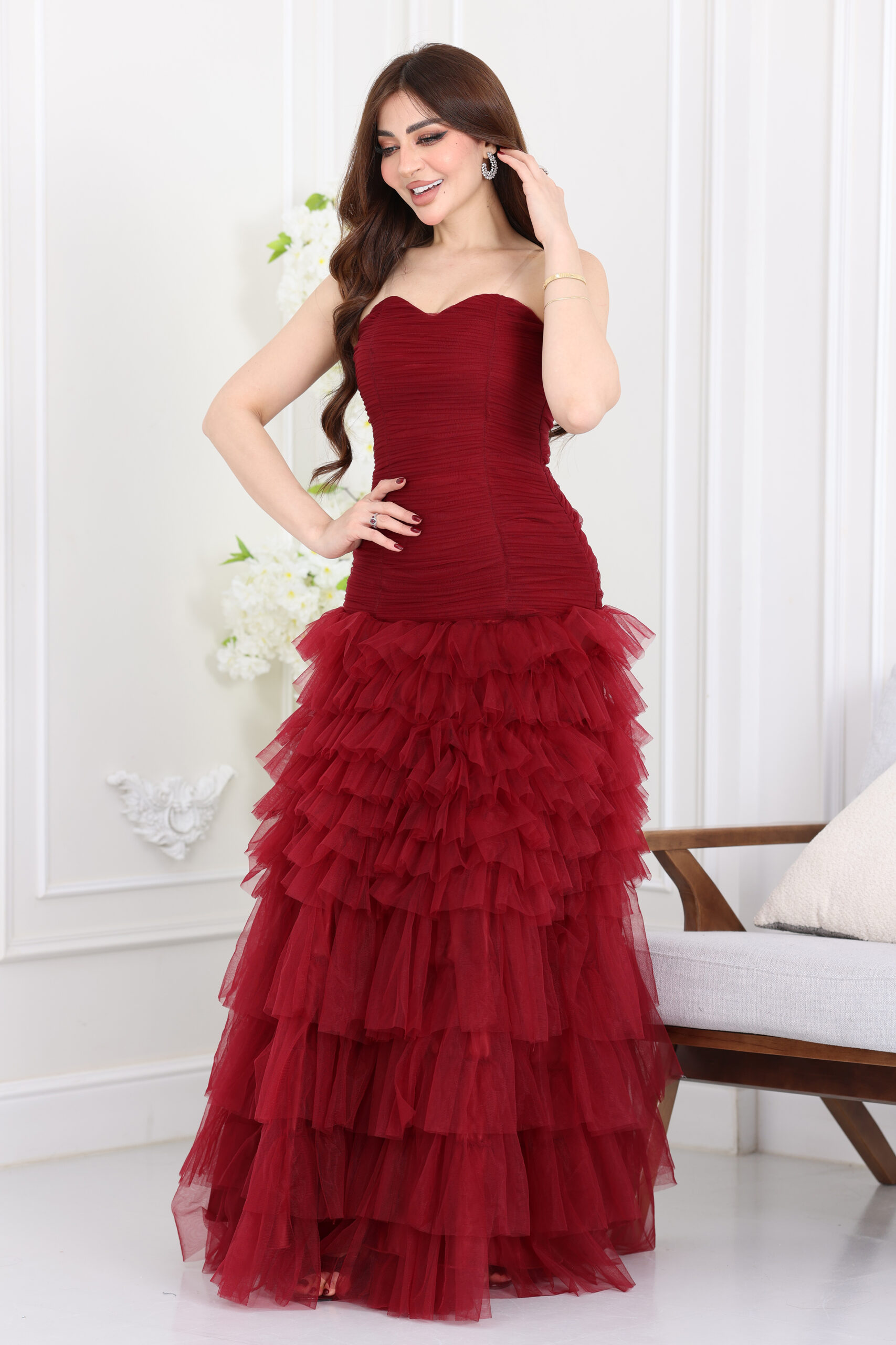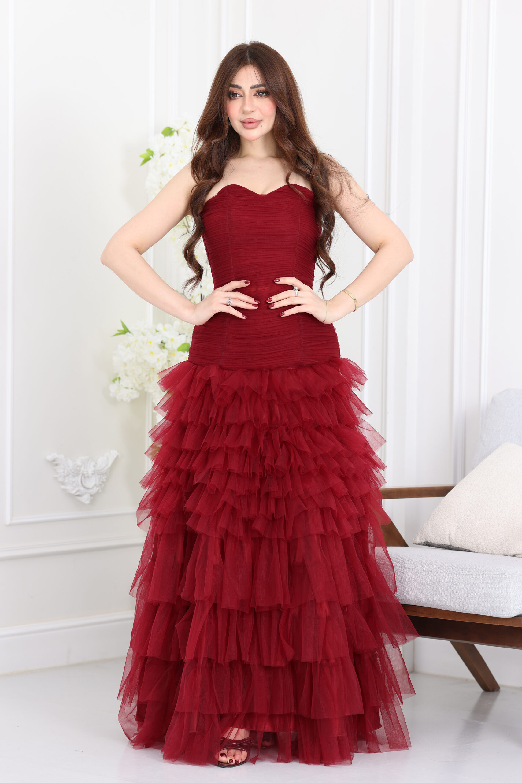 • نوع المنتج: فستان سهرة راقي بتصميم الكشكشة الطبقات.