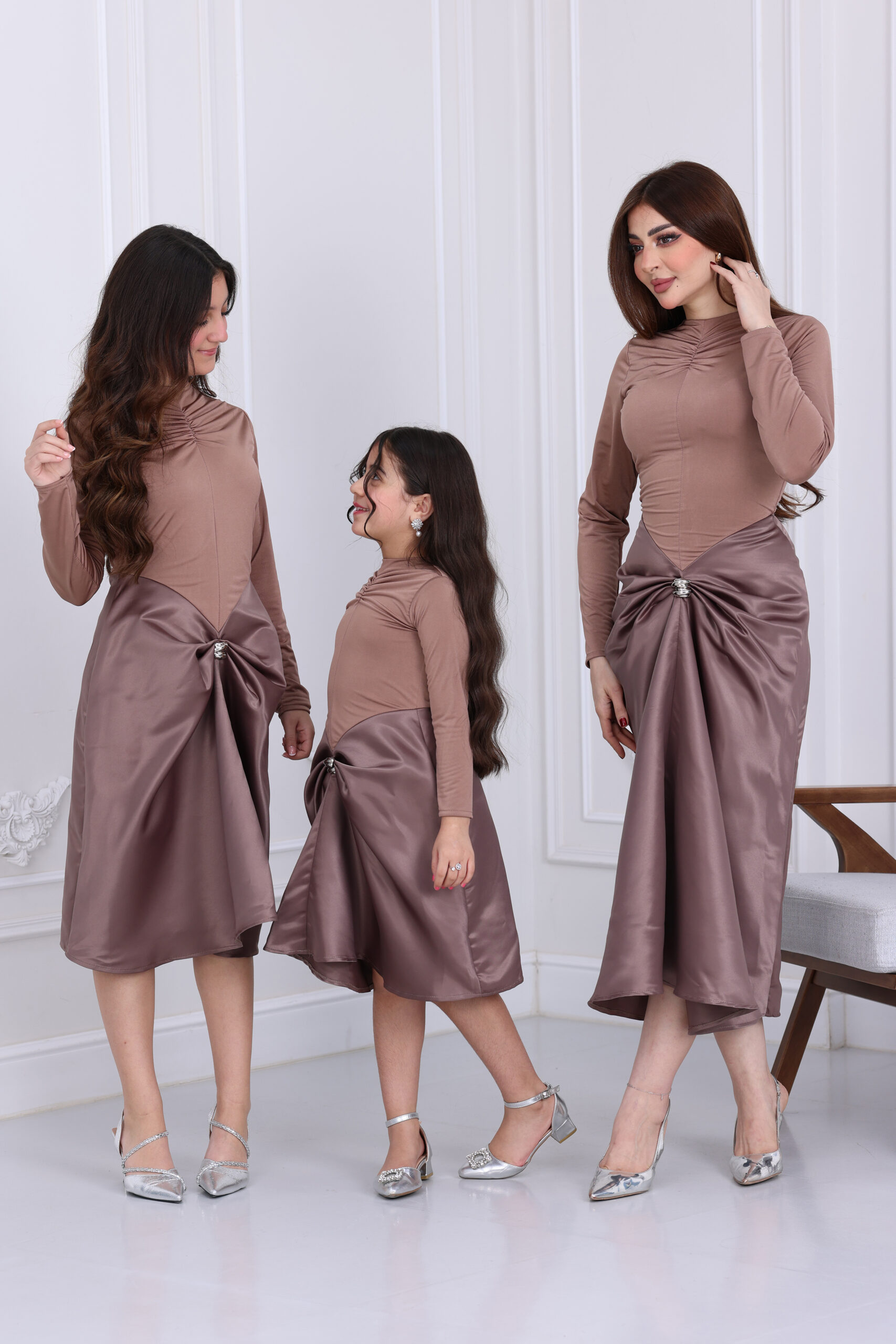 حرصنا في المصمم الحديث على استخدام أجود خامات السترتش الناعم أو الجيرسيه الفاخر التي تمتاز بملمس حريري وانسيابية خيالية لا تتجعد بسهولة مع الحركة المستمرة. القماش يمتاز بكثافته ومرونته العالية التي تضمن عدم الشفافية وتوفر لكِ ولأطفالك الراحة التامة طوال وقت المناسبة دون أي شعور بالانزعاج. كافة الكسرات والتفاصيل تم تنفيذها يدوياً بأعلى معايير الحرفية لضمان بقاء القطعة بنفس رونقها، ليكون استثماركِ في هذا الفستان هو استثمار في الأناقة الدائمة التي نقدمها بكل فخر.