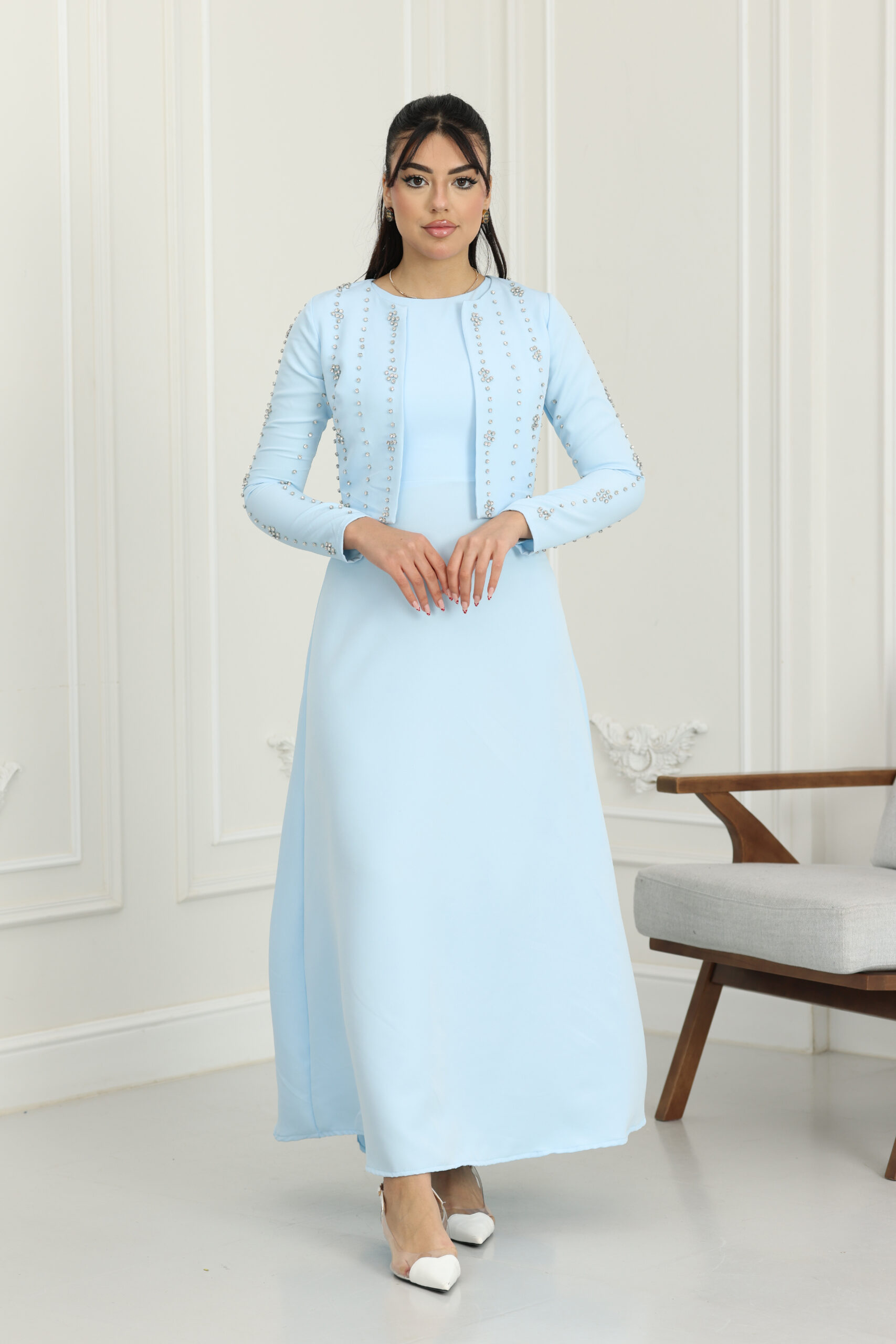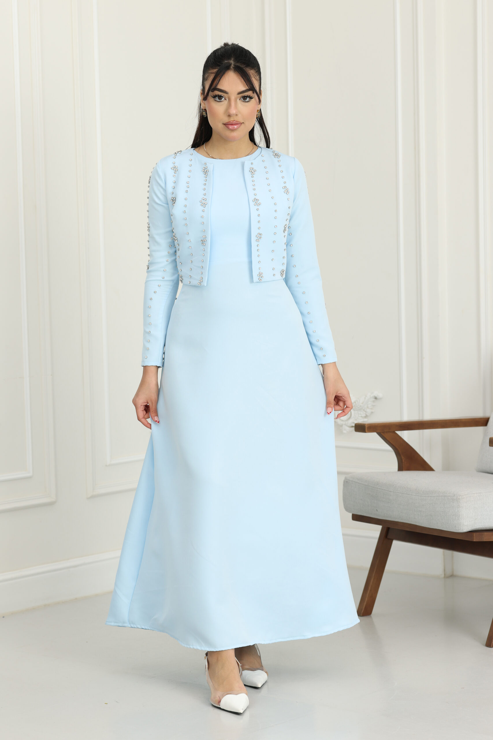 التخزين السليم: قومي بتخزين الفستان في مكان جاف ومنعزل عن الرطوبة للحفاظ على جمال الكريستالات والإكسسوارات.